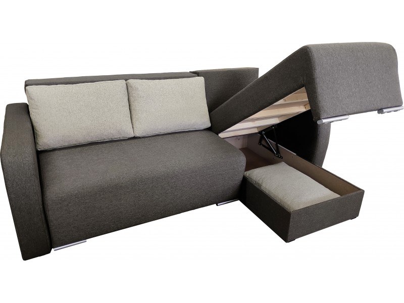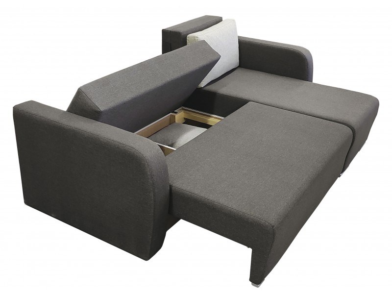 Мястото за сън е с размери 146 х 190см – едно комфортно двойно легло, на което можете да настаните гости или да използвате като постоянно място за спане, в случай че жилището ви е прекалено малко. Под лежанката е обособена ракла, в която да се съхраняват завивки, спално бельо и други принадлежности, за които все не намирате място. Преобразуването на дивана в легло и обратно се случва без особени усилия.