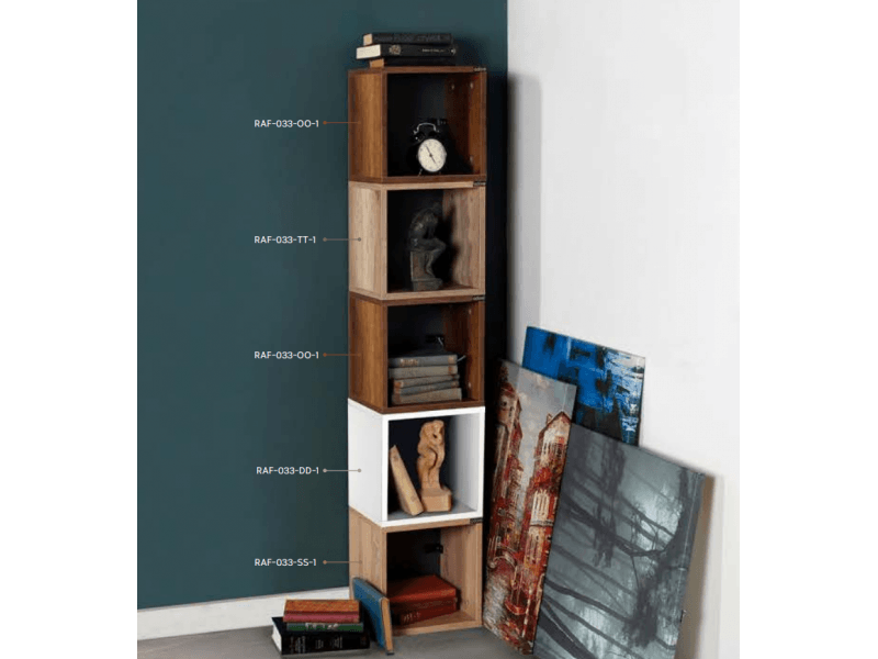Може да се комбинира с други етажерки (различни цветове) от серия RAF-033. Материал: Висококачествени плоскости от дървесни частици с меламиново покритие. Цвят: • Сонома. Срок на изработка – 60 работни дни.