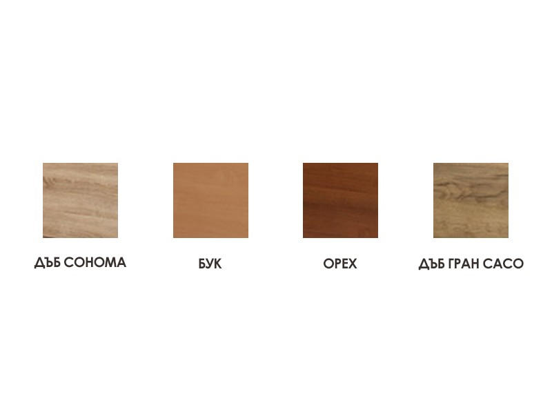 Цвят:  • Бук.   • Дъб гран сасо.   • Орех.   • Дъб сонома.