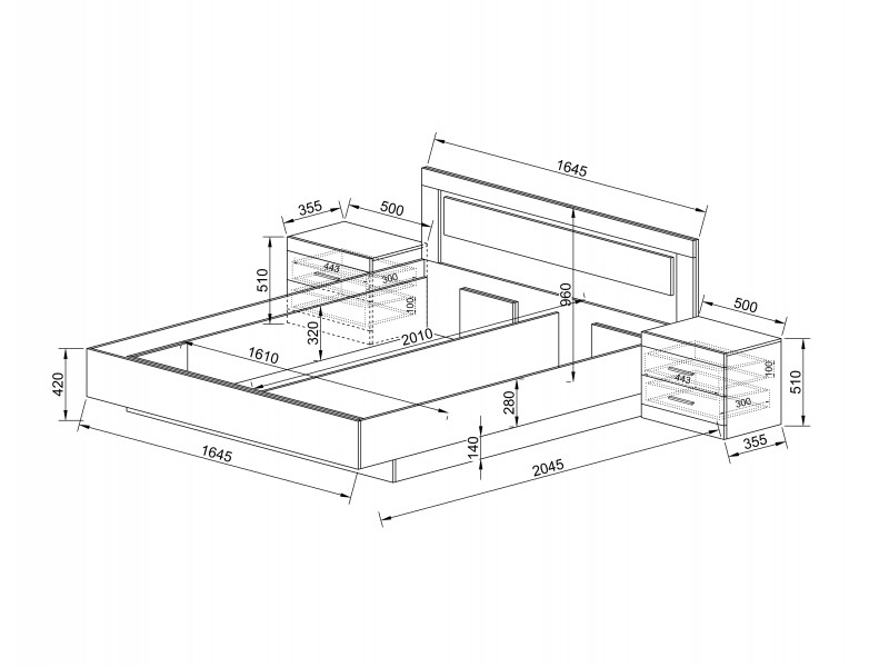 • Нощни шкафове: 500/ 350/ 510мм.