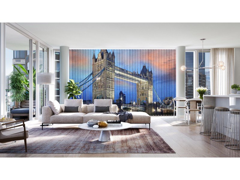 Ако искате да имате голям реалистичен пейзаж в дневната или спалнята, но ви липсва свободна стена за фототапет, не се отчайвайте! В каталога ни ще намерите едно много ефектно решение – алтернатива, която ви дава същия ефект. Предлагаме ви фото щори „Градове и мостове”, на които е изобразен лондонският мост Тауър Бридж. Гледка, която ще виждате винаги, когато затворите щорите, скривайки сивия пейзаж навън.